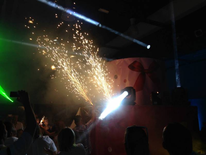 Feux d'artifices de scène : gerbes d'étincelles et jets cascades.