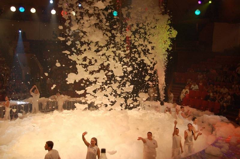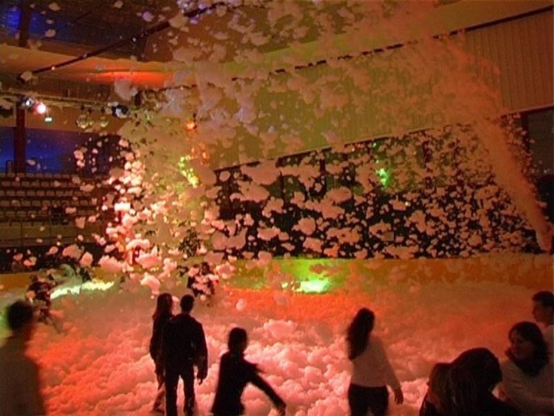 La production de la mousse se fait à l'intérieur de la tête puis elle est projetée en continu. En montant la machine sur une de nos tourelles de tir, on peut arroser la piste, la scène ou la piscine très facilement par un balayage très ludique.