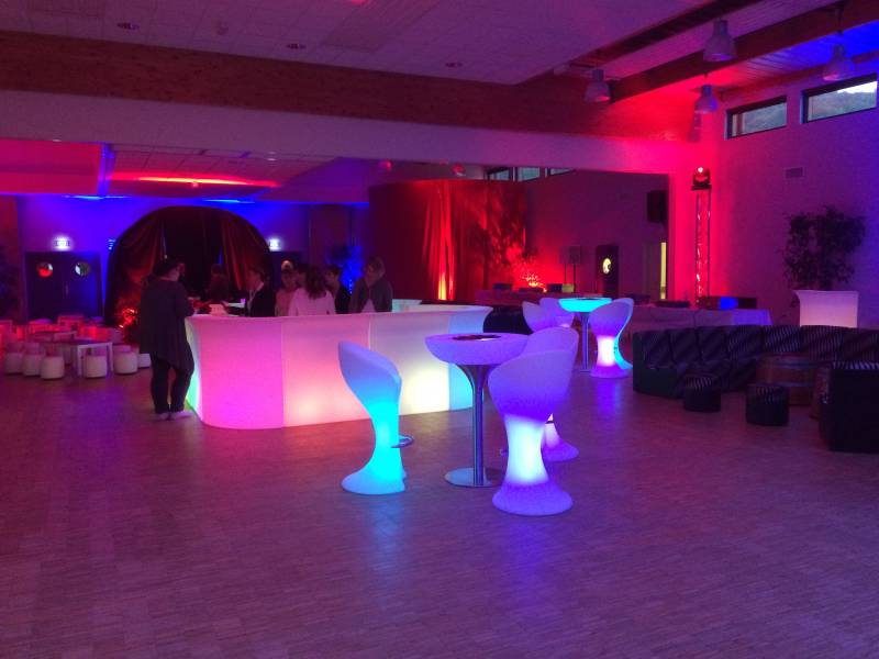 Le succès du moment le mobilliers lumineux, nous vous proposons à la location des chaises hautes lumineuses fonctionnantes sur batteries avec personnalisation de la couleur de celles-ci.