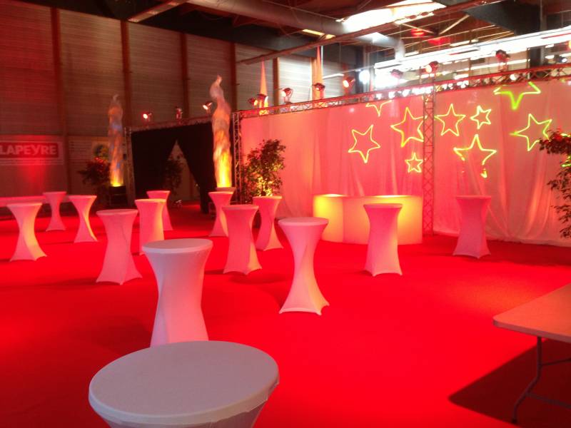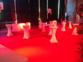 Location de mange debout pour vos réceptions, il est possible de les louer avec leurs housses en lycra de couleur personalisable (bleu, blanc, rouge...).