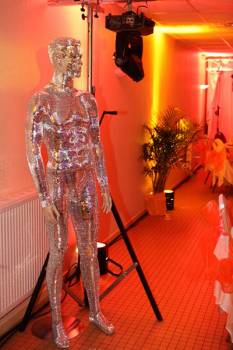 Plusieurs mannequins sont disponibles. Entièrement recouverts de petits miroirs, ils reflètent l'ambiance du lieu. C'est un élément idéal pour embellir vos soirées à thèmes.