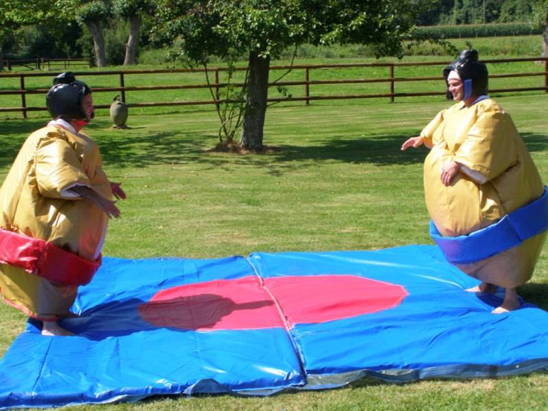 Des combinaisons de sumo pour enfants et adultes avec leurs tapis de lutte vous sont proposés. L'animation idéale pour votre enterrement de vie de garçon, de fille ou bien pour votre anniversaire.