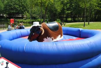 Le taureau mécanique peut faire participer les petits commes les grands. Le technicien adaptera le taureau selon les utilisateurs.